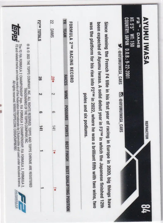 2023 Topps Chrome Formula 1 Refractor #84 Ayumu Iwasa