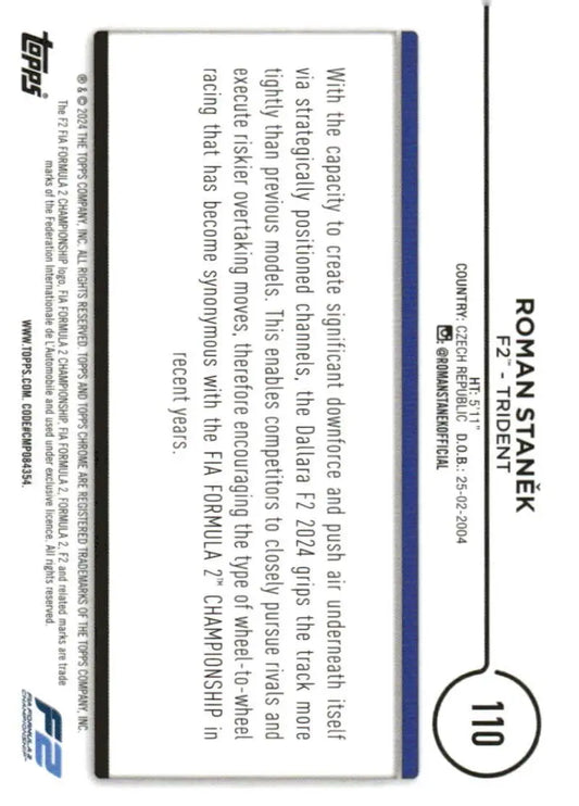 2024 Topps Chrome Formula 1 #110 Roman Stanek NM-MT F2 - Trident Racing Card