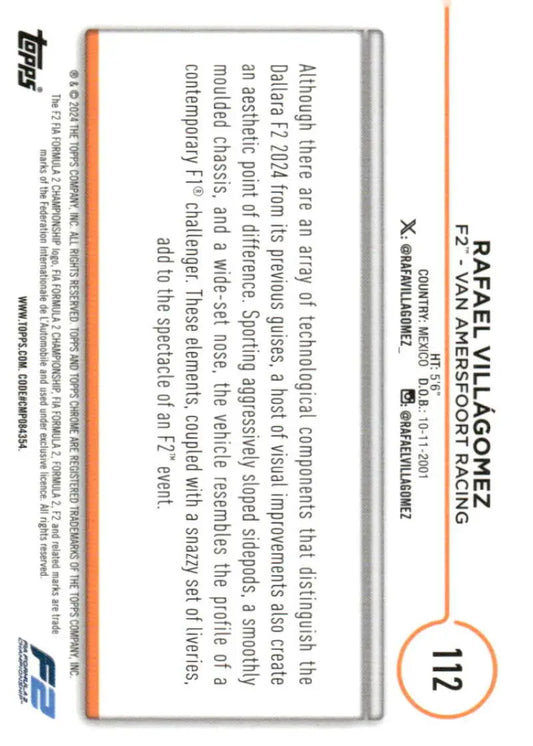 2024 Topps Chrome Formula 1 #112 Rafael Villagomez NM-MT F2 - Van Amersfoort Racing Racing Card