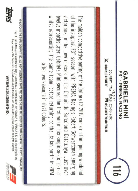 2024 Topps Chrome Formula 1 #116 Gabriele Mini NM-MT F3 - PREMA Racing Racing Card