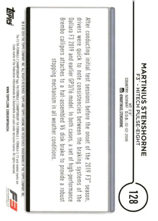 2024 Topps Chrome Formula 1 #128 Martinius Stenshorne NM-MT F3 - Hitech Pulse-Eight Racing Card