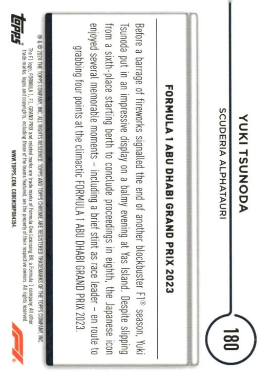 2024 Topps Chrome Formula 1 #180 Yuki Tsunoda NM-MT Scuderia AlphaTauri Racing Card