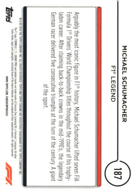 2024 Topps Chrome Formula 1 #187 Michael Schumacher NM-MT Legend Racing Card