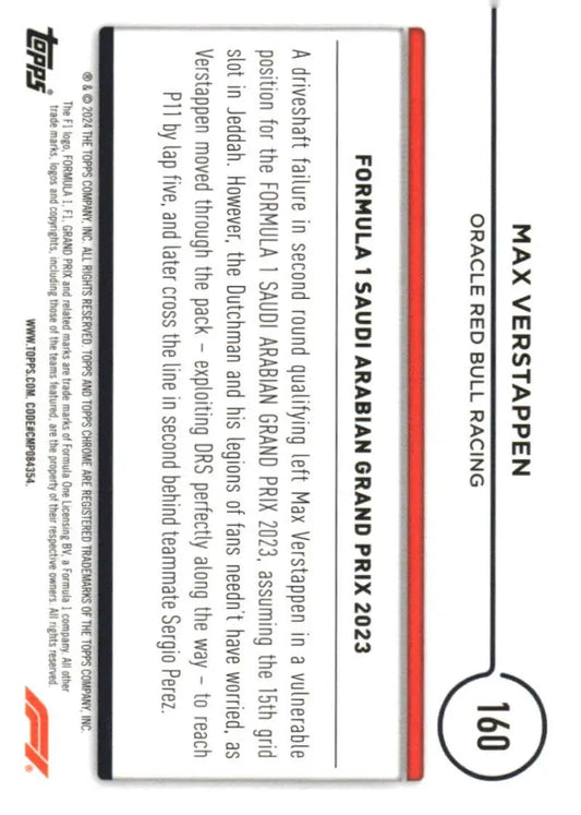 2024 Topps Chrome Formula 1 #160 Max Verstappen NM-MT Oracle Red Bull Racing Racing Card