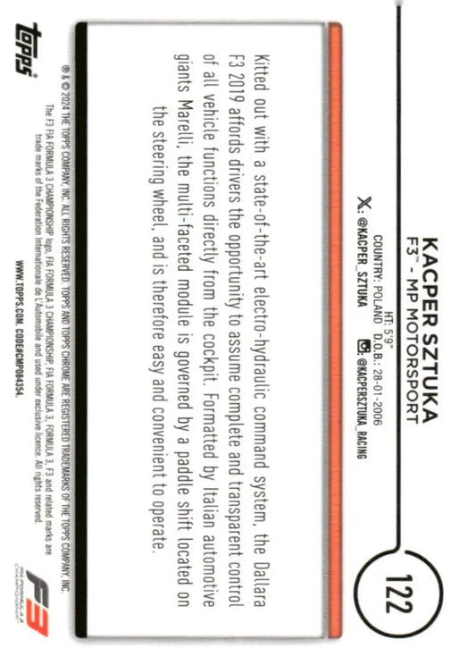 2024 Topps Chrome Formula 1 #122 Kacper Sztuka NM-MT F3 - MP Motorsport Racing Card