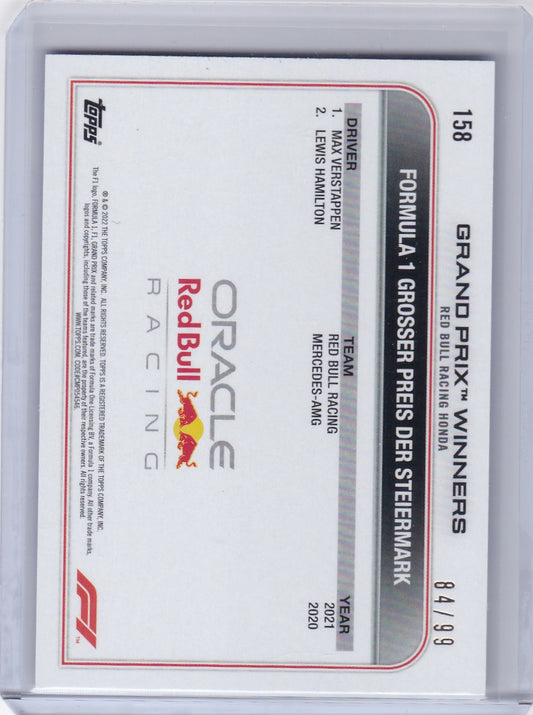 2022 Topps Formula 1 84/99 #158 Max Verstappen - Red Bull Racing