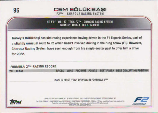 2022 Topps Formula 1 #96 Cem Bolukbasi NM-MT Racing Card