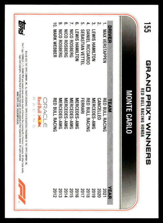 2022 Topps Formula 1 Checker Flag #155 Max Verstappen NM-MT Racing Card