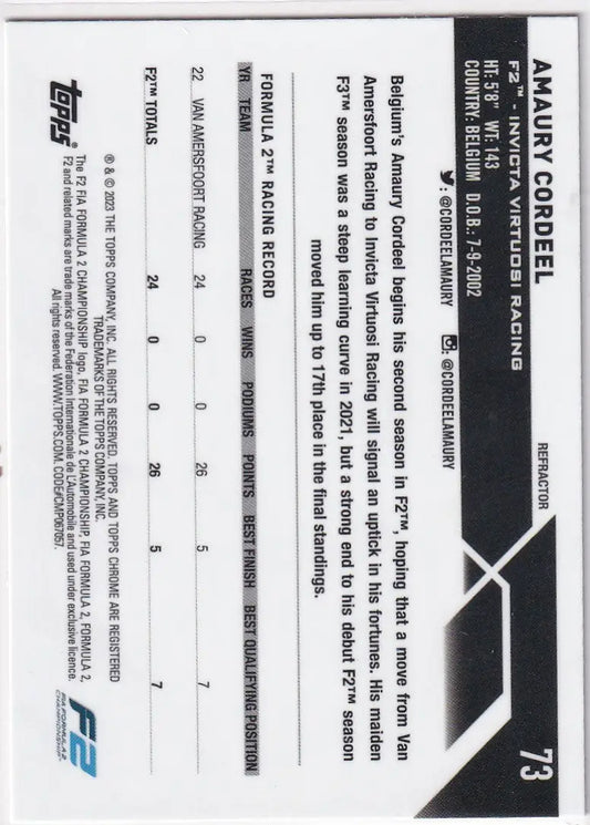 2023 Topps Chrome Formula 1 Refractor #73 Amaury Cordeel
