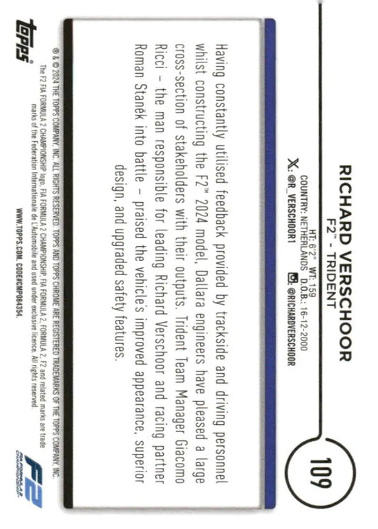 2024 Topps Chrome Formula 1 #109 Richard Verschoor NM-MT F2 - Trident Racing Card