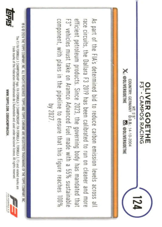 2024 Topps Chrome Formula 1 #124 Oliver Goethe NM-MT F3 - Campos Racing Racing Card