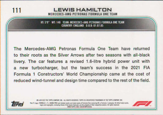 2022 Topps Formula 1 #111 Lewis Hamilton NM-MT Racing Card