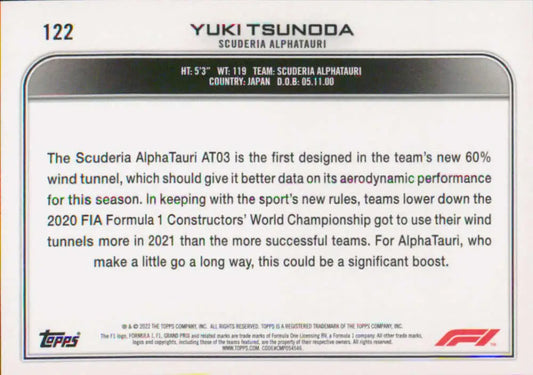 2022 Topps Formula 1 #122 Yuki Tsunoda NM-MT Racing Card