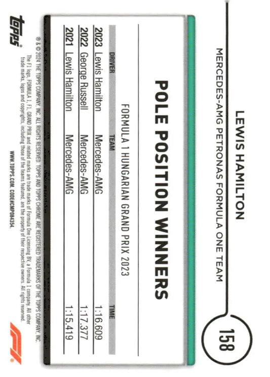 2024 Topps Chrome Formula 1 #158 Lewis Hamilton NM-MT Mercedes-AMG Petronas Formula One Team Racing Card