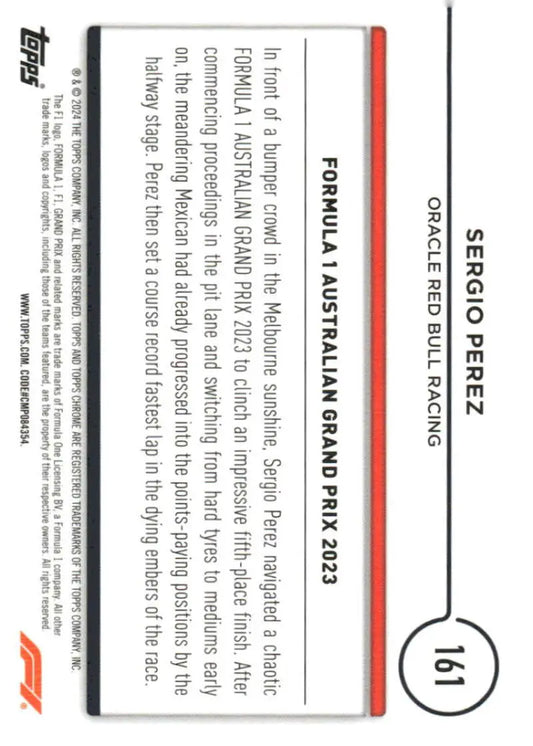 2024 Topps Chrome Formula 1 #161 Sergio Perez NM-MT Oracle Red Bull Racing Racing Card