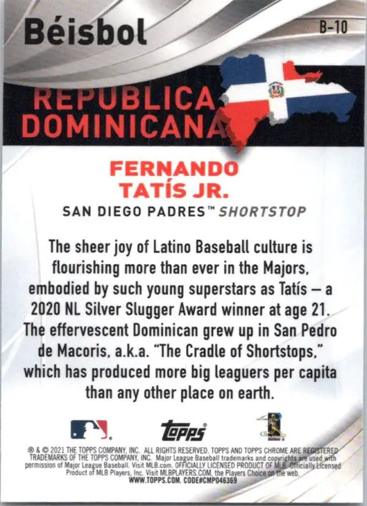 2021 Topps Chrome Beisbol Refractor #B-10 Fernando Tatis Jr. NM-MT San Diego Padres Baseball Card