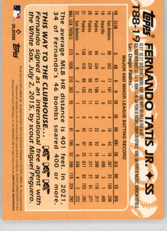2023 Topps 1988 Baseball #T88-19 Fernando Tatis Jr. NM-MT San Diego Padres Baseball Card