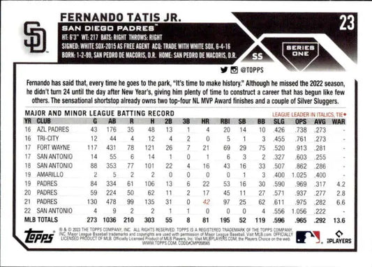 2023 Topps #23 Fernando Tatis Jr. NM-MT San Diego Padres Baseball Card