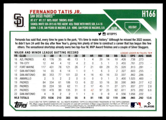 2023 Topps Holiday #H166 Fernando Tatis Jr. NM-MT San Diego Padres Baseball Card