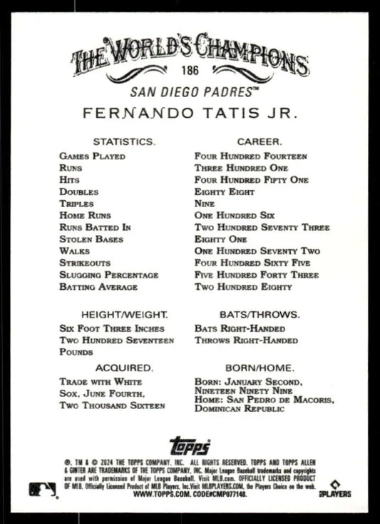 2024 Allen & Ginter #186 Fernando Tatis Jr. NM-MT San Diego Padres Baseball Card