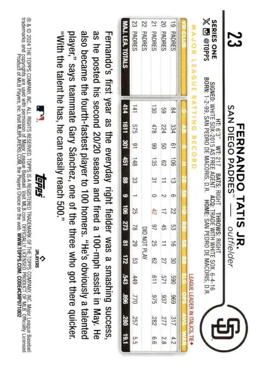 2024 Topps #23 Fernando Tatis Jr. NM-MT San Diego Padres Baseball Card