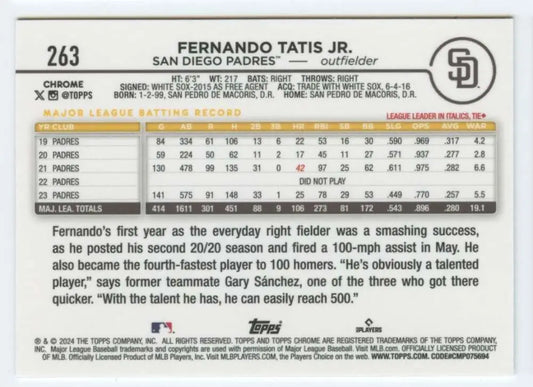 2024 Topps Chrome #263 Fernando Tatis Jr. NM-MT San Diego Padres Baseball Card