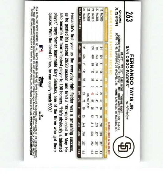 2024 Topps Chrome X-Fractor #263 Fernando Tatis Jr. NM-MT San Diego Padres Baseball Card
