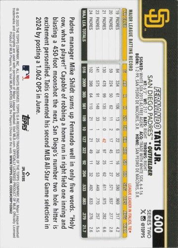 2025 Topps #600 Fernando Tatis Jr. NM-MT Padres ID:78446