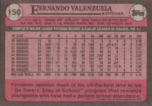 1989 Topps #150 Fernando Valenzuela NM-MT Los Angeles Dodgers Baseball Card