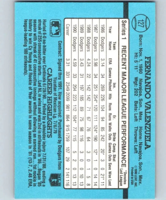 1991 Donruss #127 Fernando Valenzuela UER NM-MT Los Angeles Dodgers Baseball Card