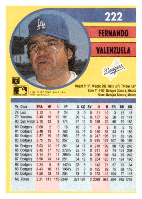 1991 Fleer #222a Fernando Valenzuela