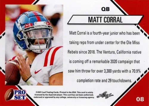2021 Pro Set College Football Blaster #8 Matt Corral NM-MT RC Rookie Am ID:42039