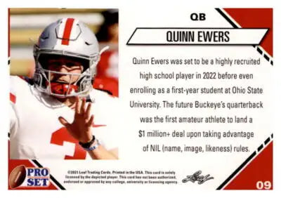 2021 Pro Set College Football Blaster White #9 Quinn Ewers NM-MT RC Rookie Amate