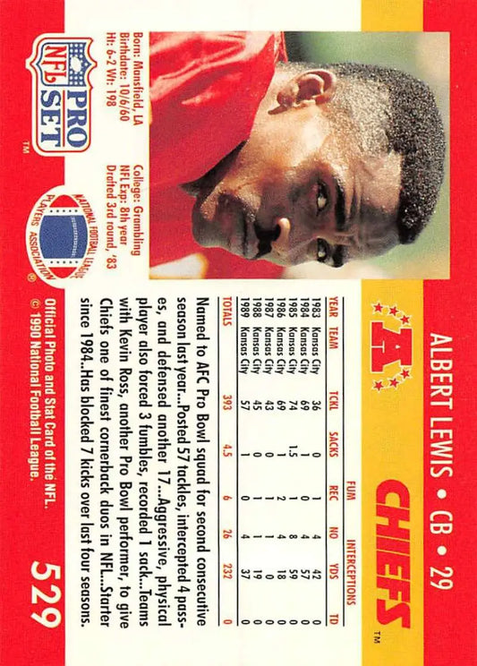 1990 Pro Set #529 Albert Lewis NM-MT Kansas City Chiefs Football Card