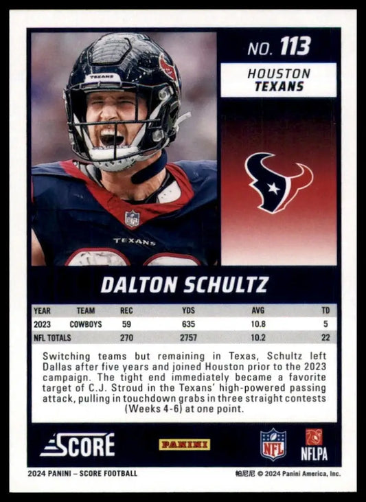 2024 Score Dalton Schultz #113 Houston Texans Football Card NFL Sports