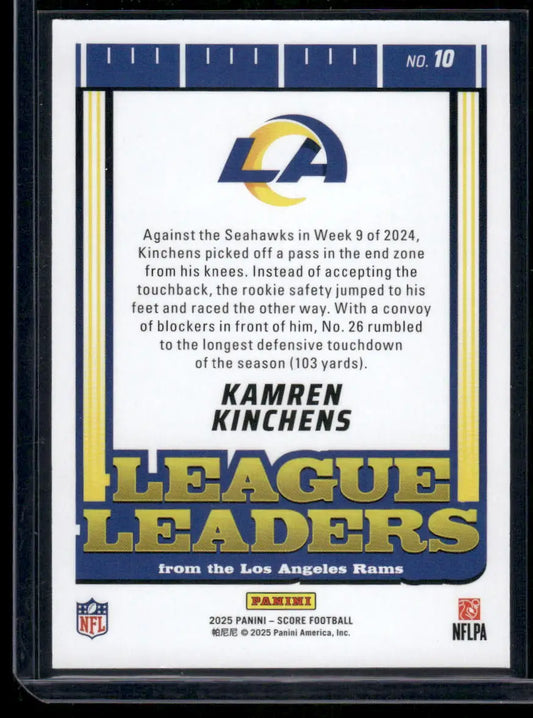 2025 Panini Score League Leaders Kamren Kinchens #10 Football