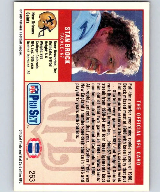 1989 Pro Set #263 Stan Brock NM-MT New Orleans Saints Football Card
