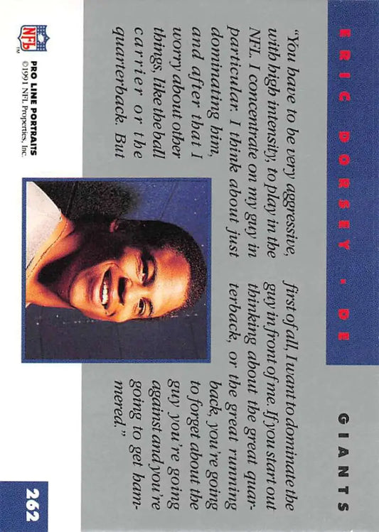1991 Pro Line Portraits #262 Eric Dorsey EX-NM New York Giants Football Card