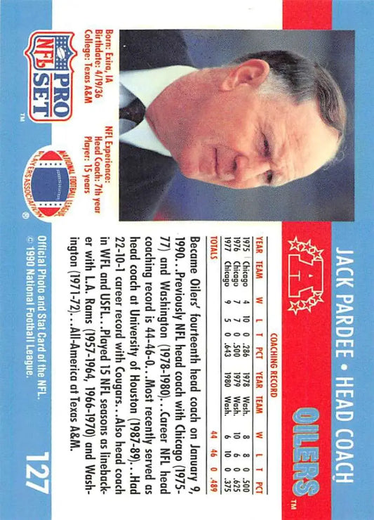 1990 Pro Set #127 Jack Pardee NM-MT Houston Oilers Football Card