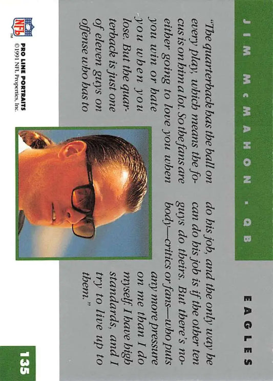 1991 Pro Line Portraits #135 Jim McMahon EX-NM Philadelphia Eagles Football Card