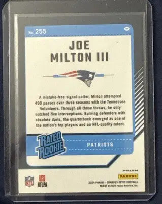 2024 Optic Football #255 Joe Milton III GREEN VELOCITY RC - New England Patriots