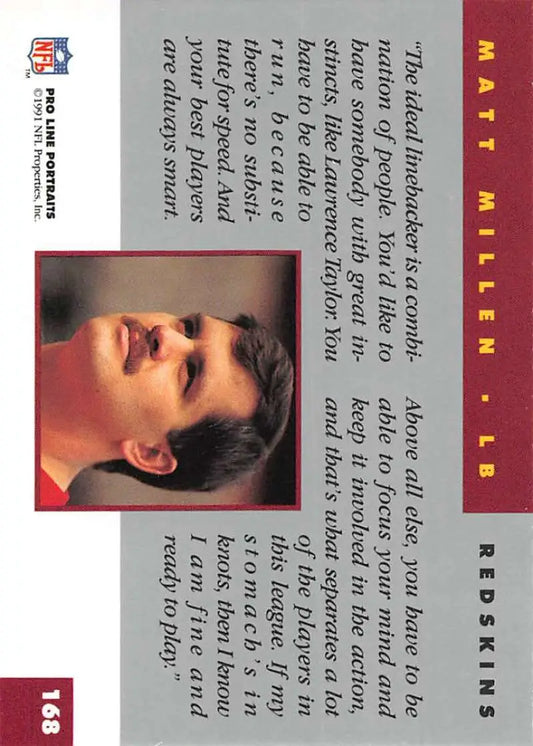 1991 Pro Line Portraits #168 Matt Millen EX-NM Washington Redskins Football Card