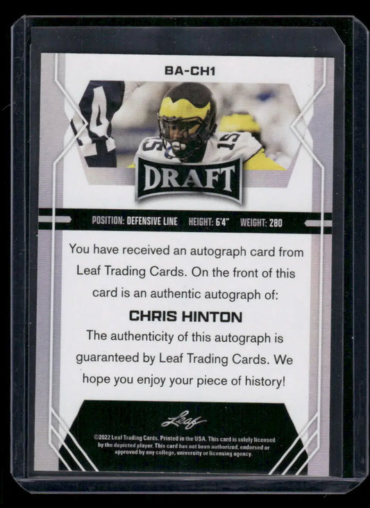 2022 Leaf Draft Chris Hinton #BA-CH1 Red RC Football
