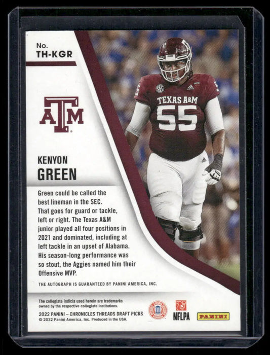 2022 Panini Threads Draft Picks Kenyon Green #TH-KGR Football