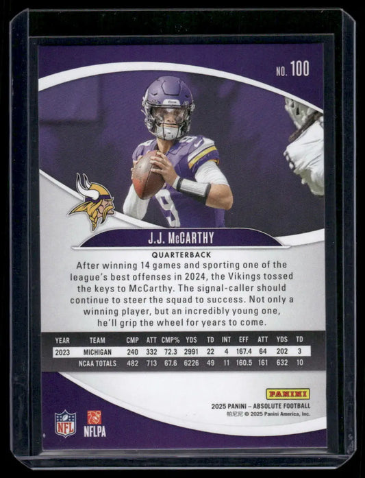 2025 Panini Absolute Football J.J. McCarthy #100 Football