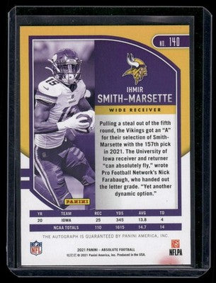 2021 Panini Absolute Football Ihmir Smith-Marsette #140 Red RC 029/100 Football