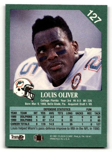 1991 Fleer #127 Louis Oliver Miami Dolphins Football Cards NM Near M ID:60534