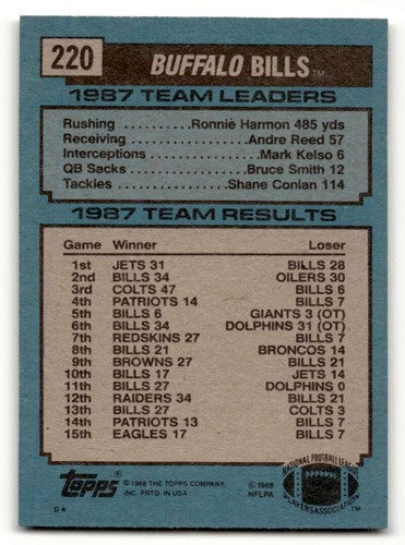 1988 Topps #220 Kelly Plots His Course TL Buffalo Bills Football Car ID:62552