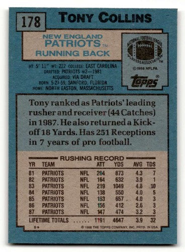 1988 Topps #178 Tony Collins New England Patriots Football Cards EX/ ID:62512