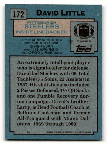 1988 Topps #172 David Little Pittsburgh Steelers Football Cards EX/N ID:62506